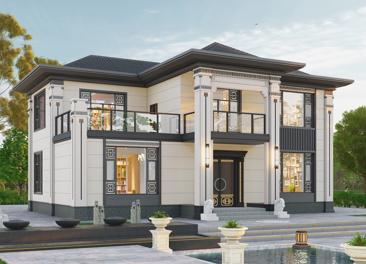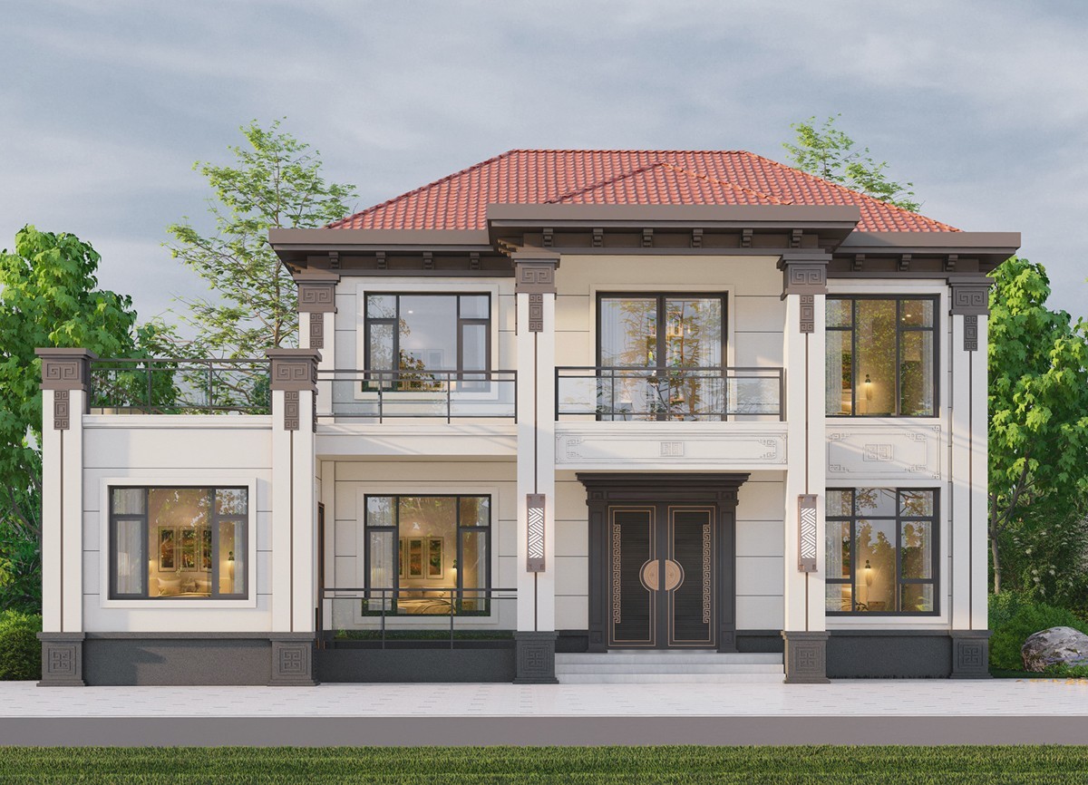 恩阳005 两层新中式(11.36x11.76米)-【易设计】