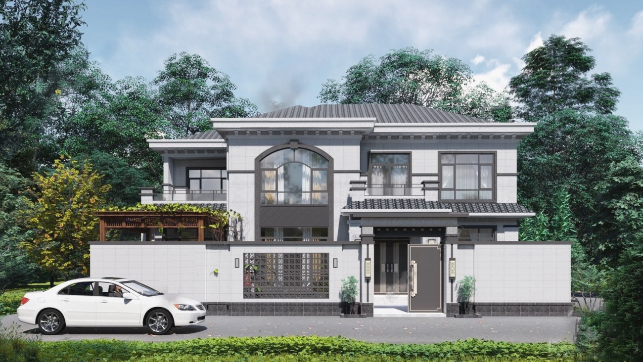 恩阳011 两层新中式(15.43x12.66米)-【易设计】